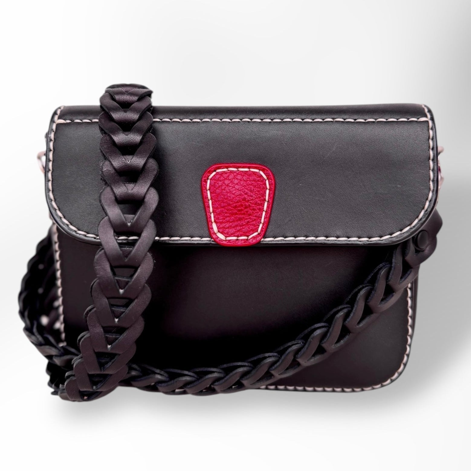 This product boasts a timeless and sophisticated design featuring a magnetic closure and fabric lining. It also includes a detachable hand-cut leather chain strap for added versatility.